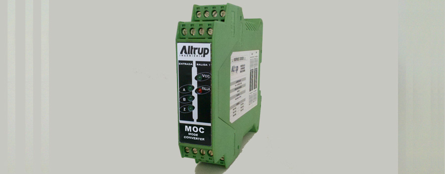 El módulo Conversor de Modo (MOC) permite al usuario entrar con señales de distintos tipos de sensores y adaptar la salida a la señal empleada por el controlador. Esta adaptación de señales cuenta, además, con la posibilidad de adaptar niveles entre entrada y salida, pasando de TTL a HTL o viceversa y separándolas galvánicamente.
